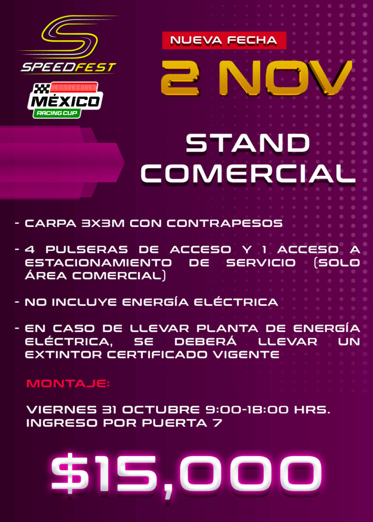 La tercer edición SpeedFest el Festival de la Velocidad más emocionante de México que reúne a los campeonatos nacionales más importantes de nuestro país. Por primera vez en México tendrá al campeonato MÉXICO RACING CUP.